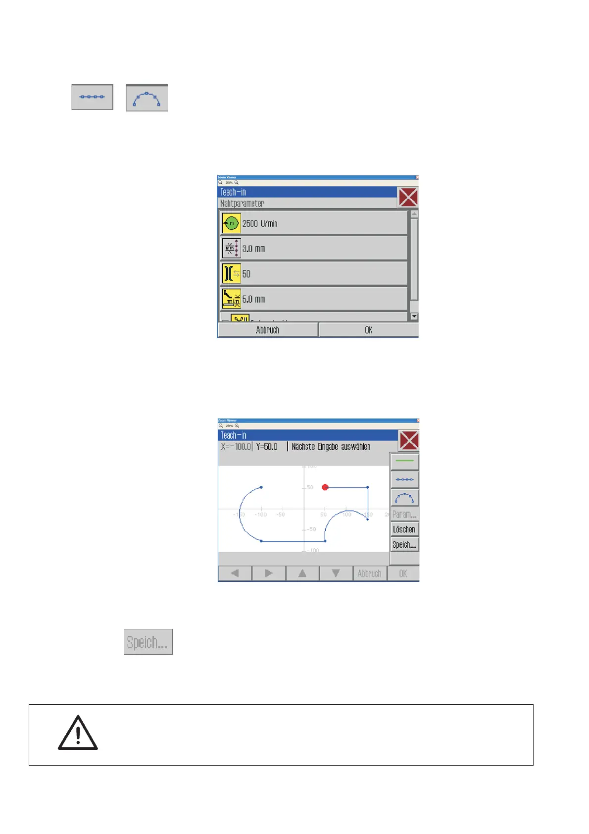 Select the “Line sewing” or “circular arc” button. The menu for the