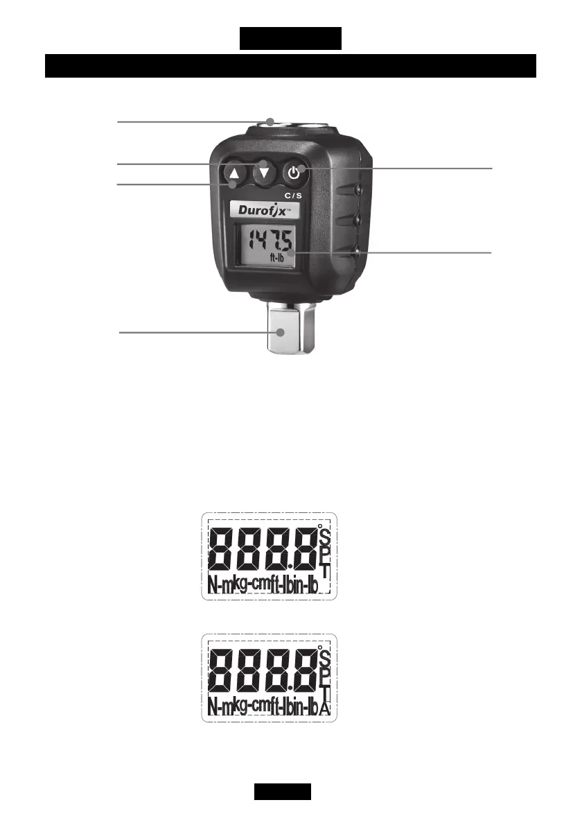 1. 3/8” / 1/2” Carré (mâle) 2. Écran LCD