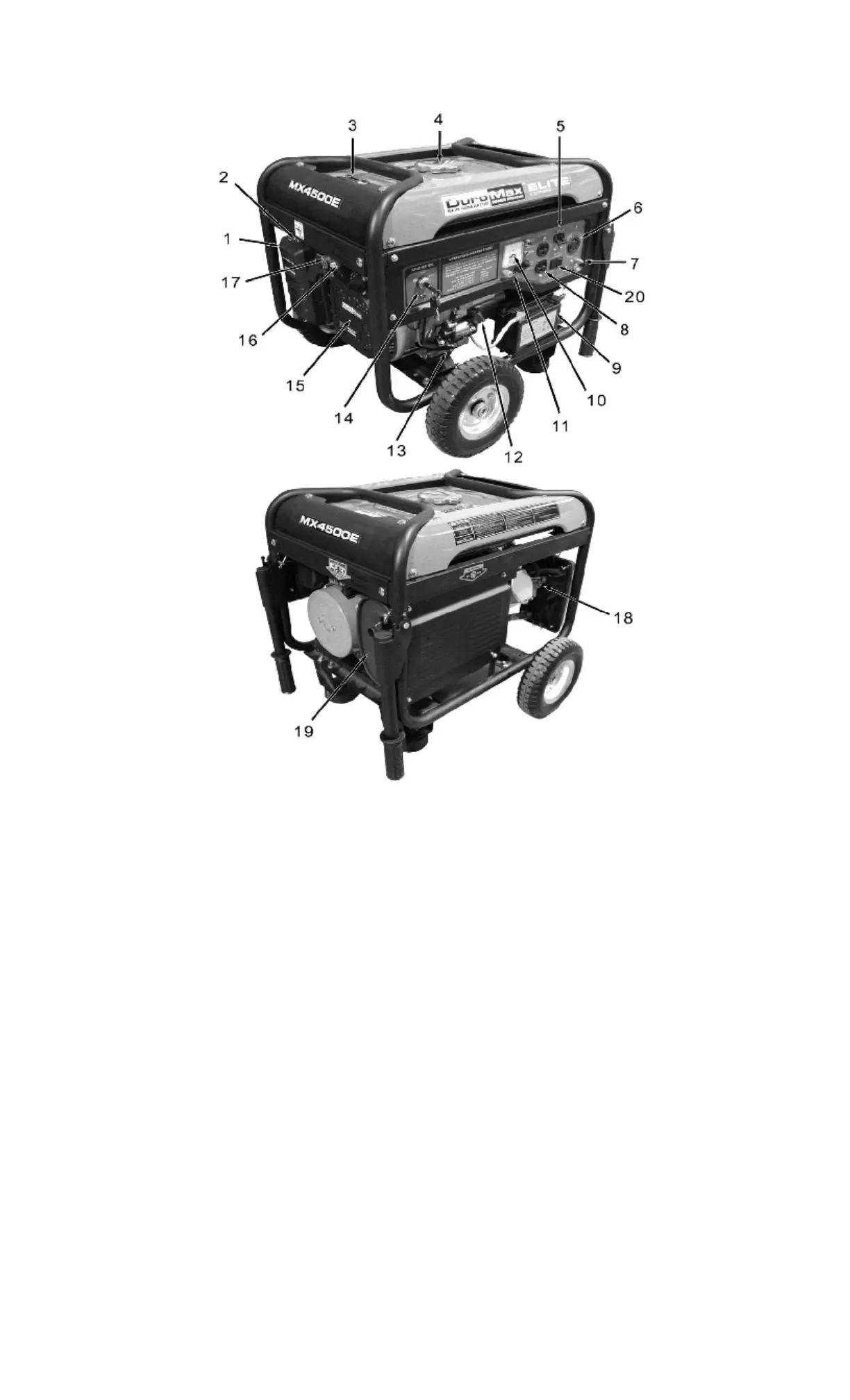 (5) Circuit Breaker- Reset switch that protects the generator from electrical overload.