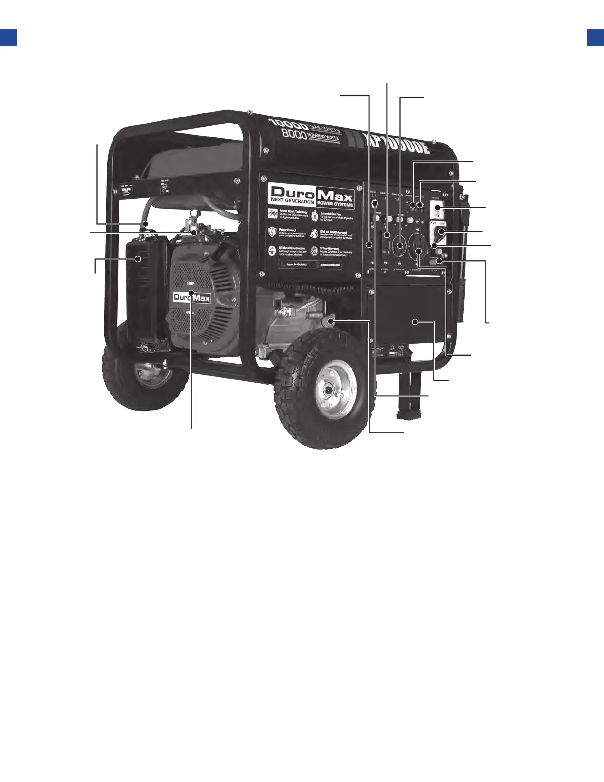 5. Circuit Breaker - Resettable switch that protects the generator from electrical overload.