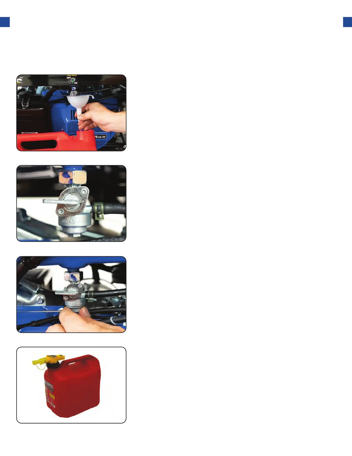 the fuel valve to the “ON” position. Drain all the gas from the