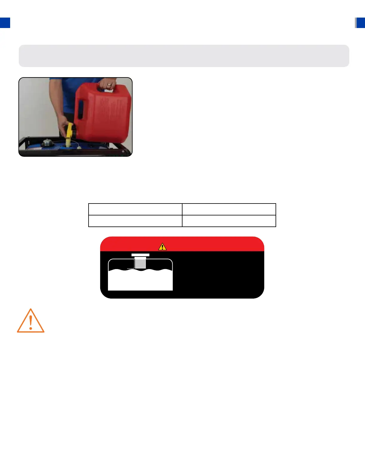 WARNING: Gas can expand. Do not ll the gas tank to the very top. Leave a