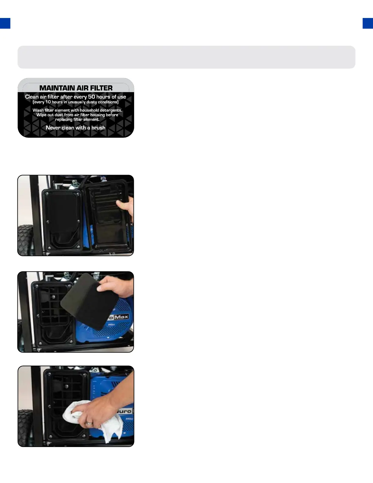 Routine maintenance of the air cleaner helps maintain proper