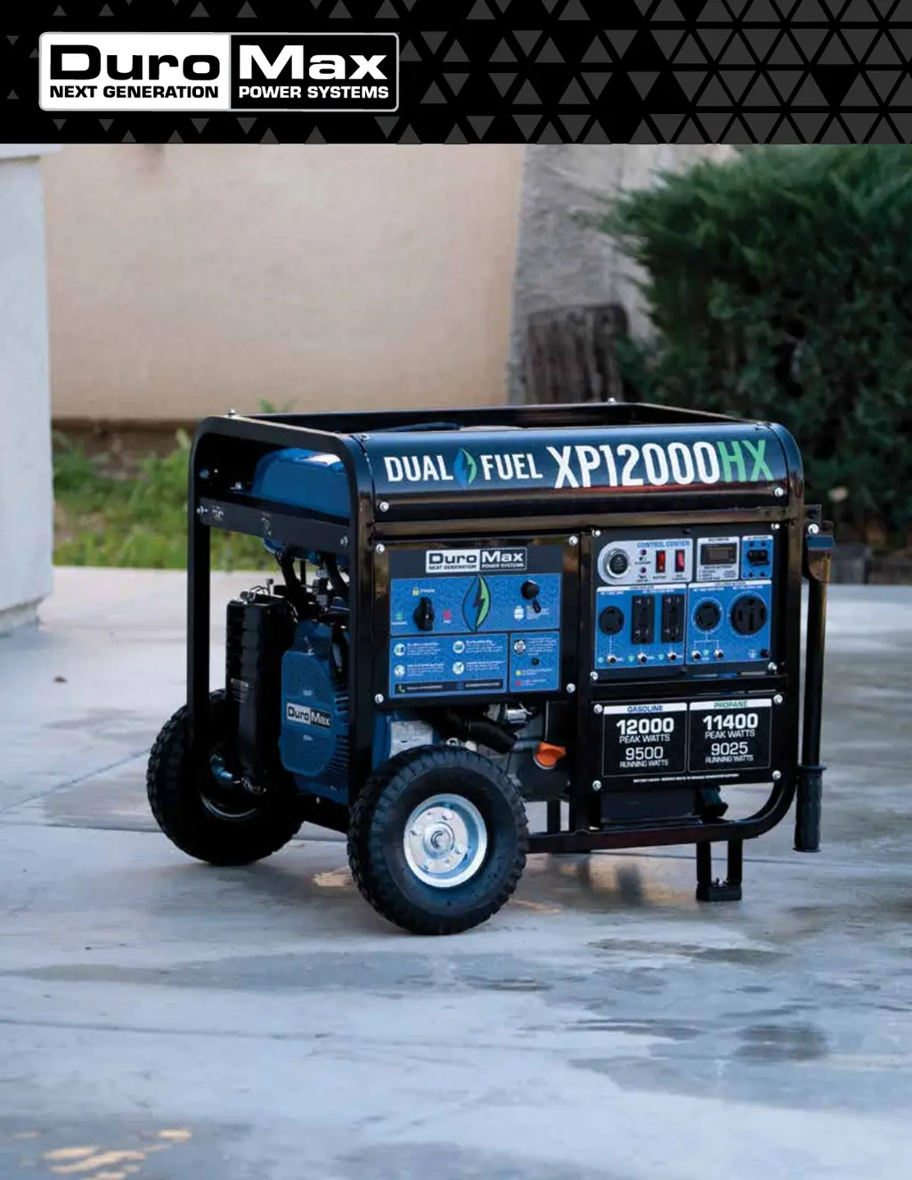 If your DUROMAX Portable Generator's engine won't start, several issues could be the cause. First, ensure the engine switch is set to “run” and the fuel valve is in the “open” position. Check that the choke is closed and that there is sufficient fuel in the generator, making sure the fuel isn't old or contaminated. A dirty or broken spark plug can also prevent starting, so clean or replace it as needed. Also, confirm the generator is on a level surface and that the oil level is adequate; add or change the oil if necessary.