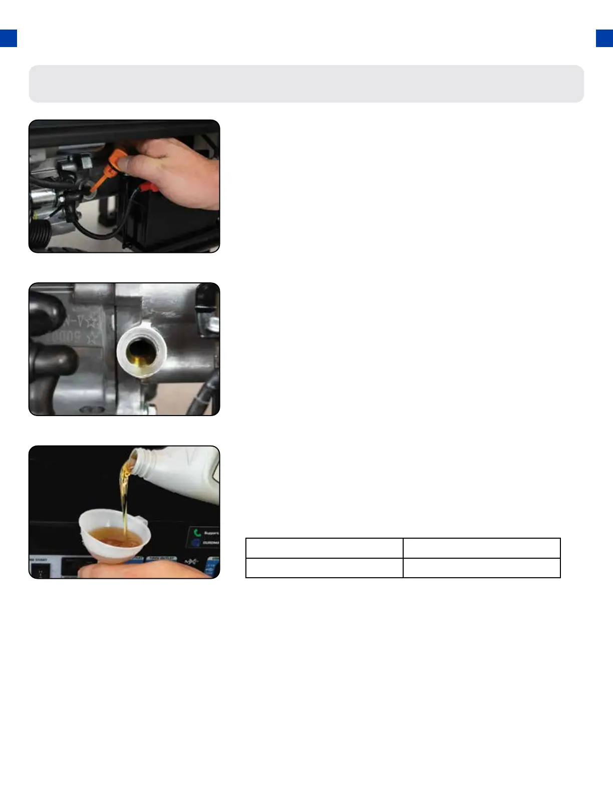 e. The oil will be visible in the oil ll spout when full.