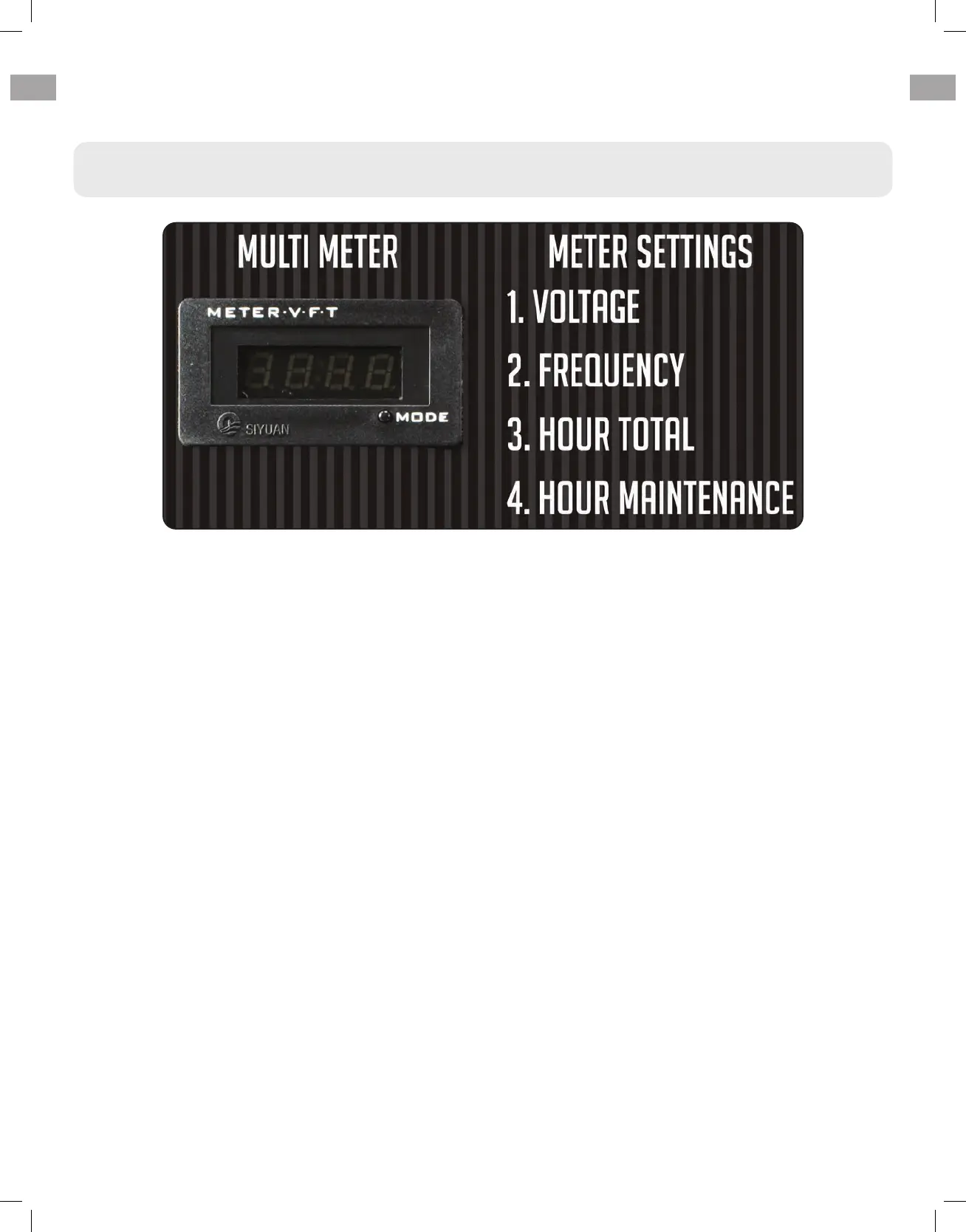 Displays the current running time in Hours. Hold down the MODE button