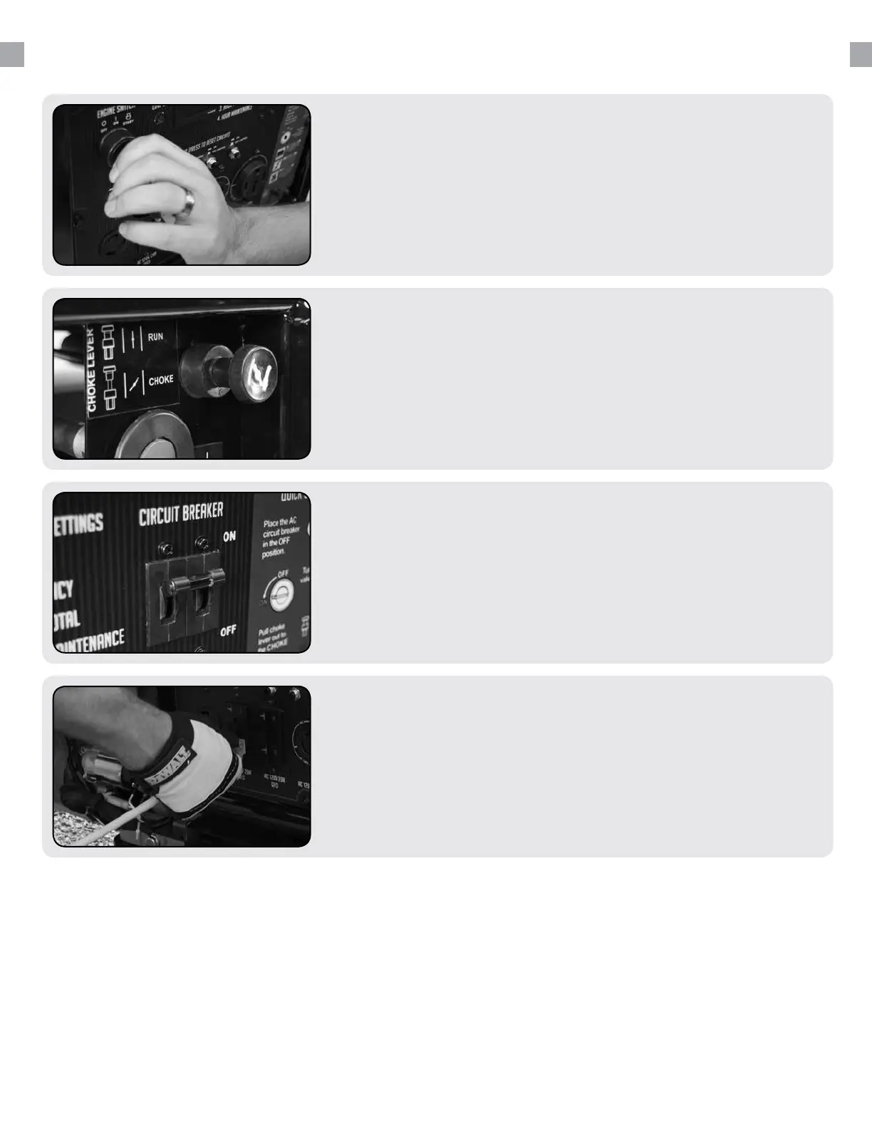 panel. Insert the key and turn to the start position to start