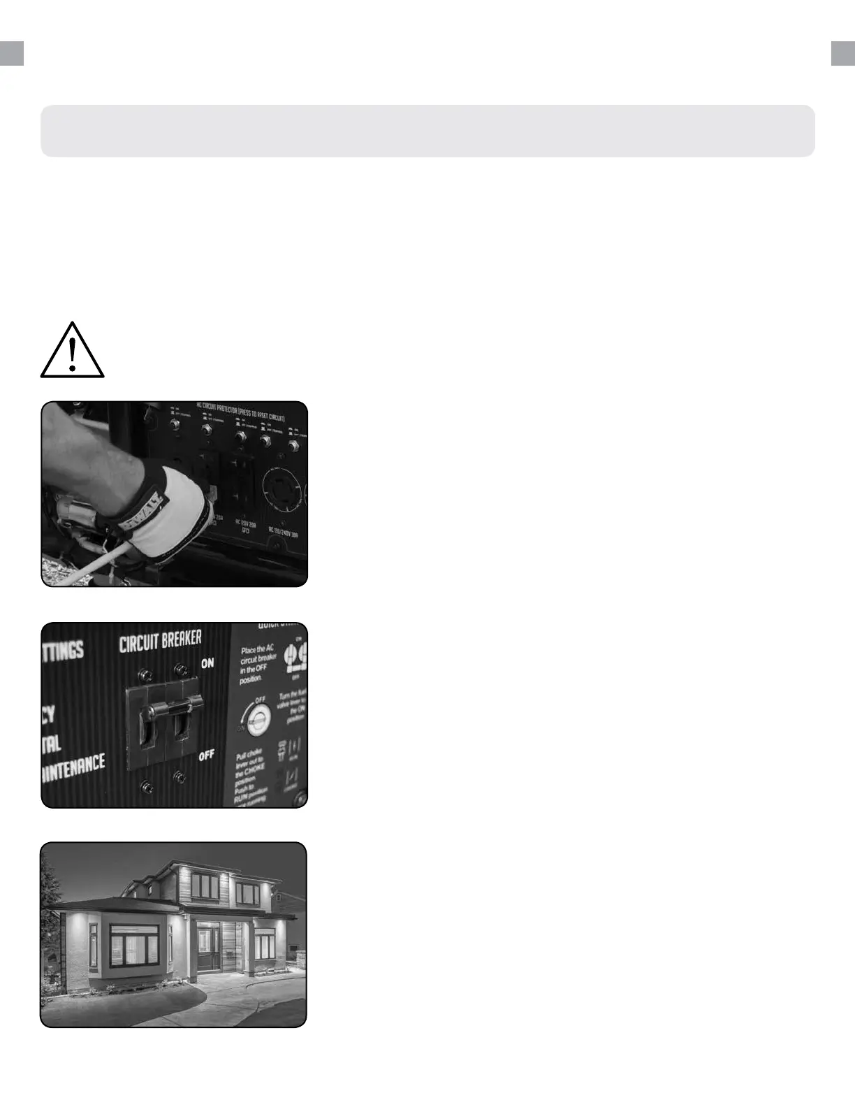 CAUTION: Do not connect 50Hz or 3-phase loads to the generator.