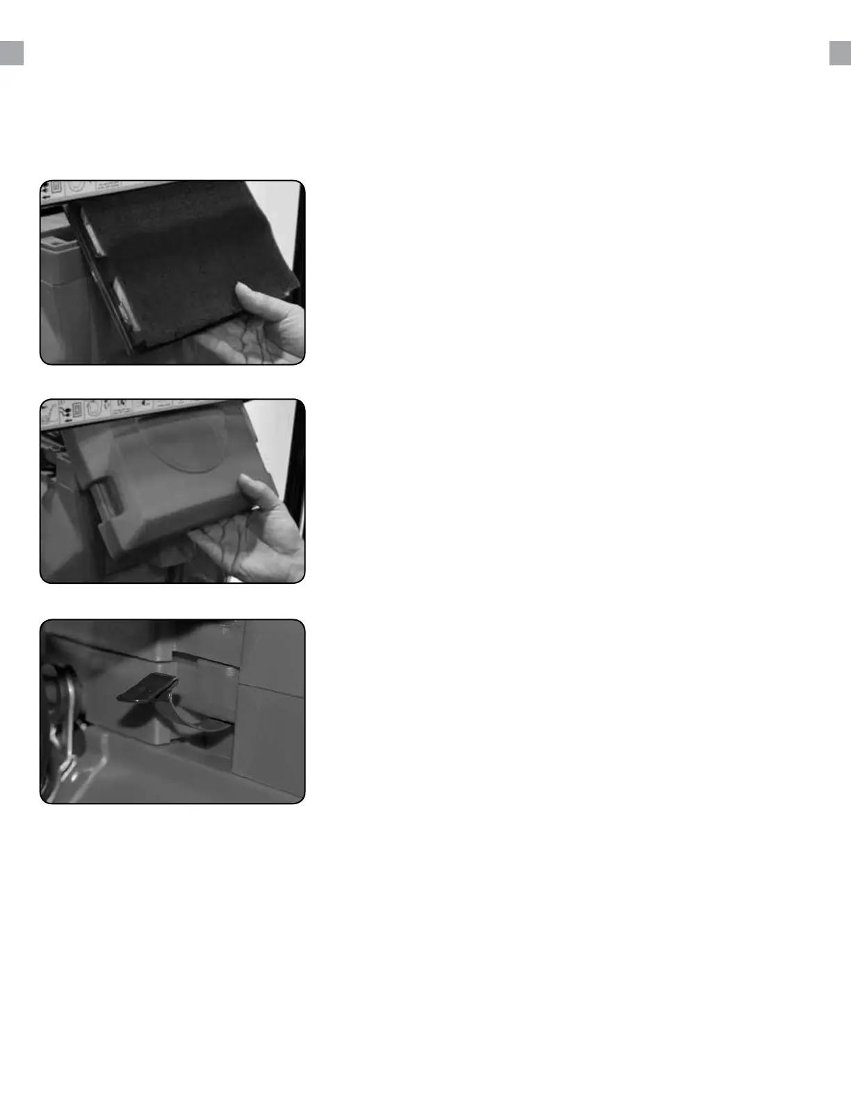 Insert the lter, paper side down into the air lter compartment