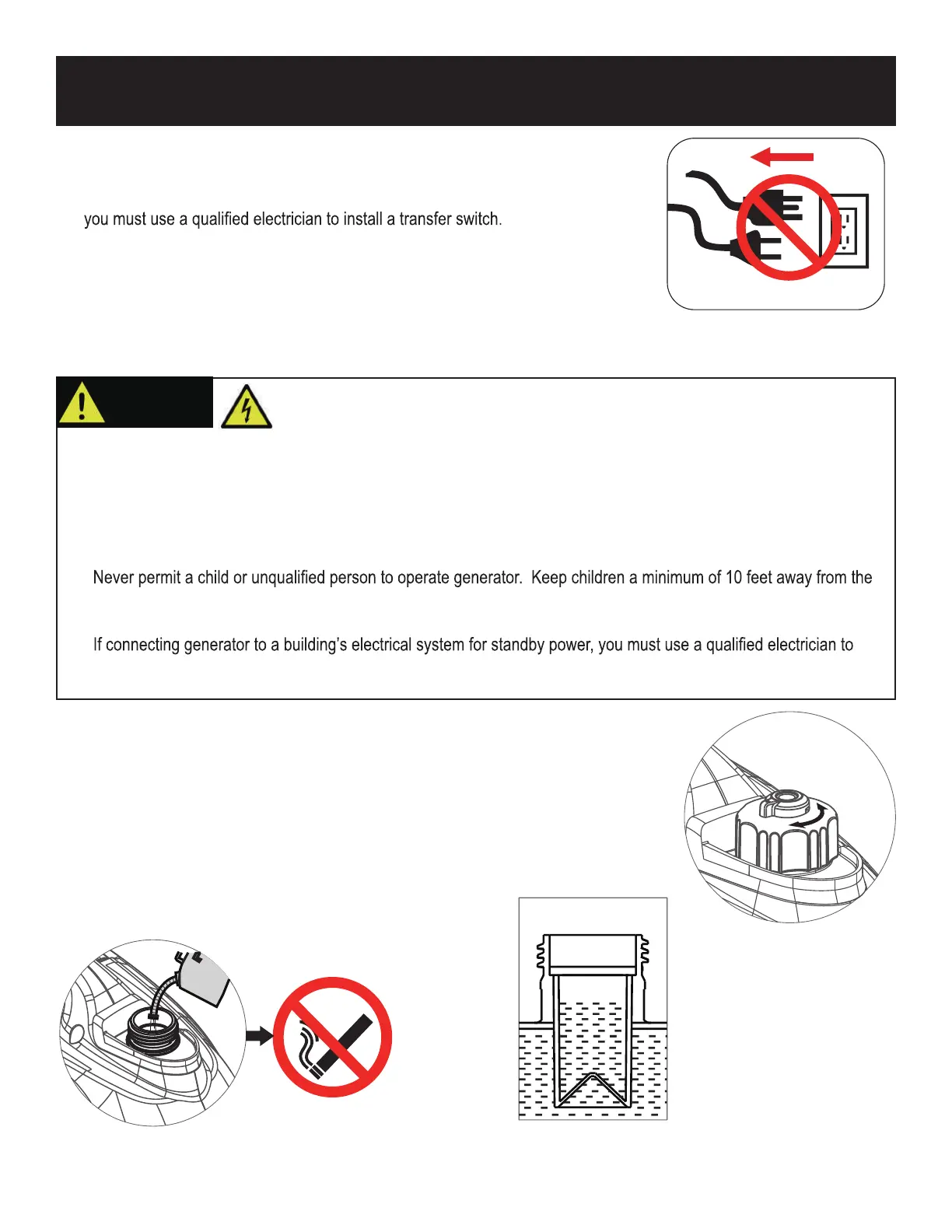 install a transfer switch. Failure to isolate the generator from the power utility could result in serious injury or death to