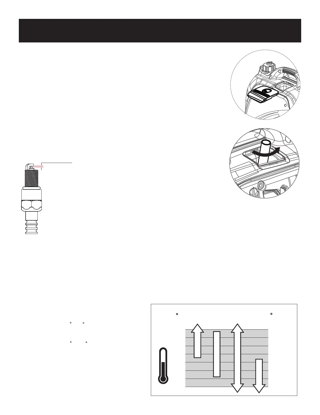 • If spark plug is worn replace only with an equivalent replacement part. Spark plug should