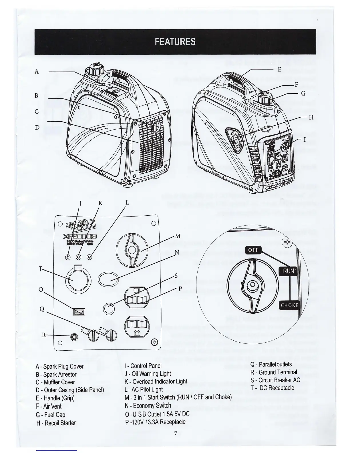 DUROMAX XP2000iS - Generator Features; Key Components Overview