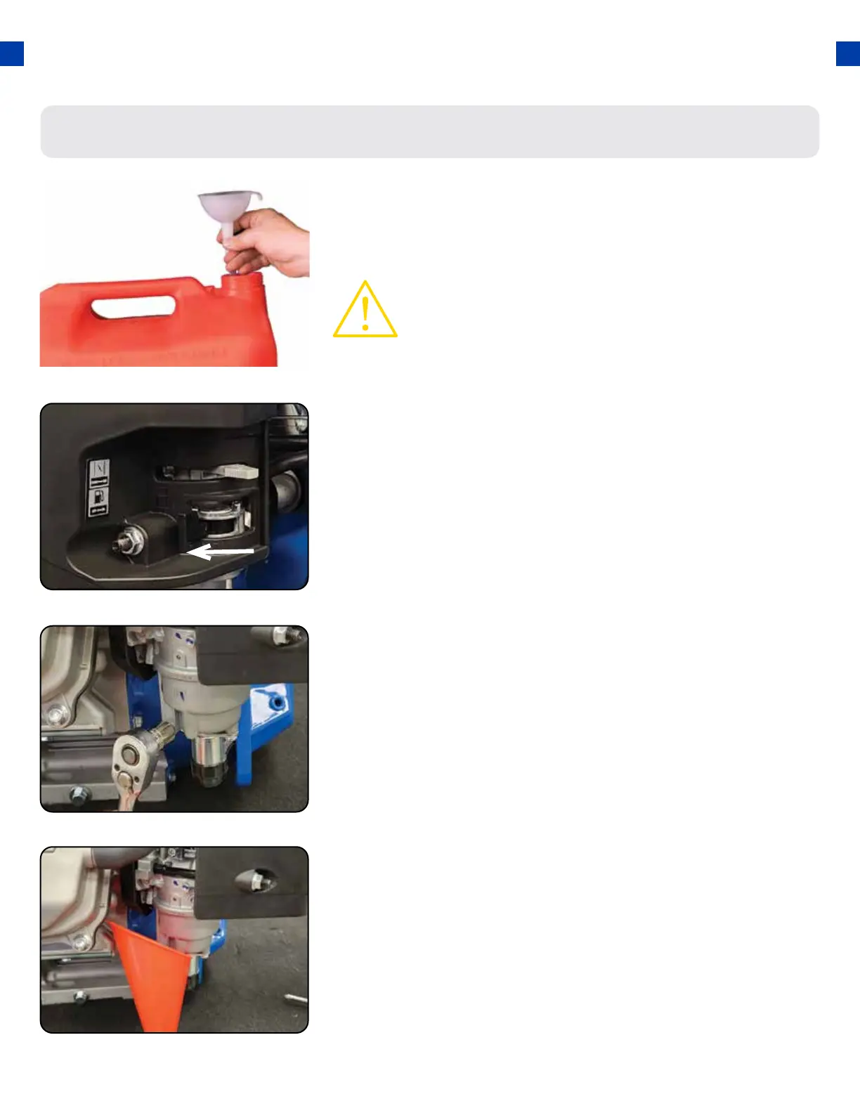 Place funnel with container to catch the gasoline under the