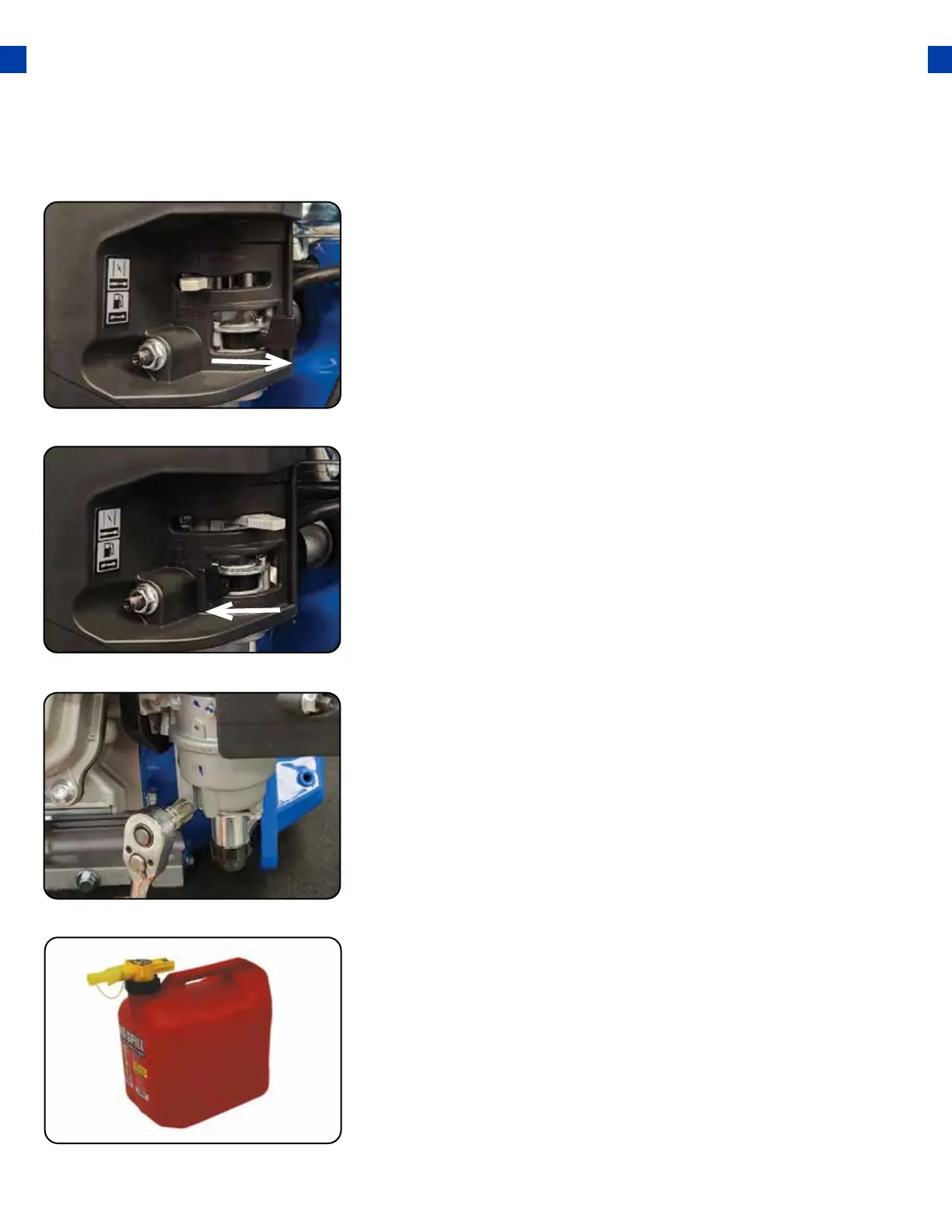 Turn the fuel valve to “ON” and allow gasoline to drain into