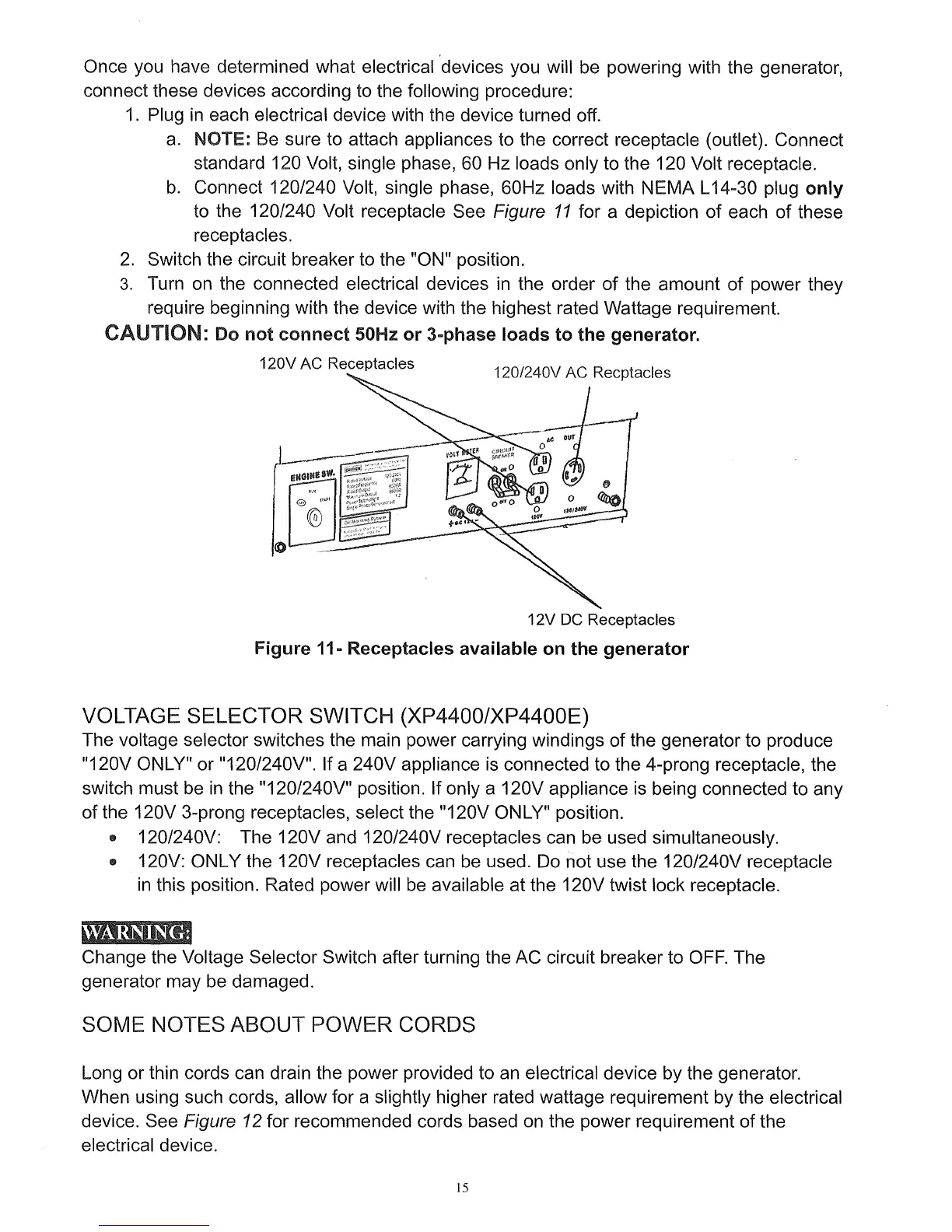 to the 120/240 Volt receptacle See Figure