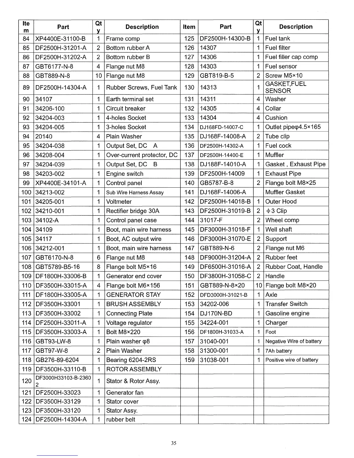 109 DF1800H-33006-B 1 Generator end cover 150 DF3800H-31058-C 2 Handle