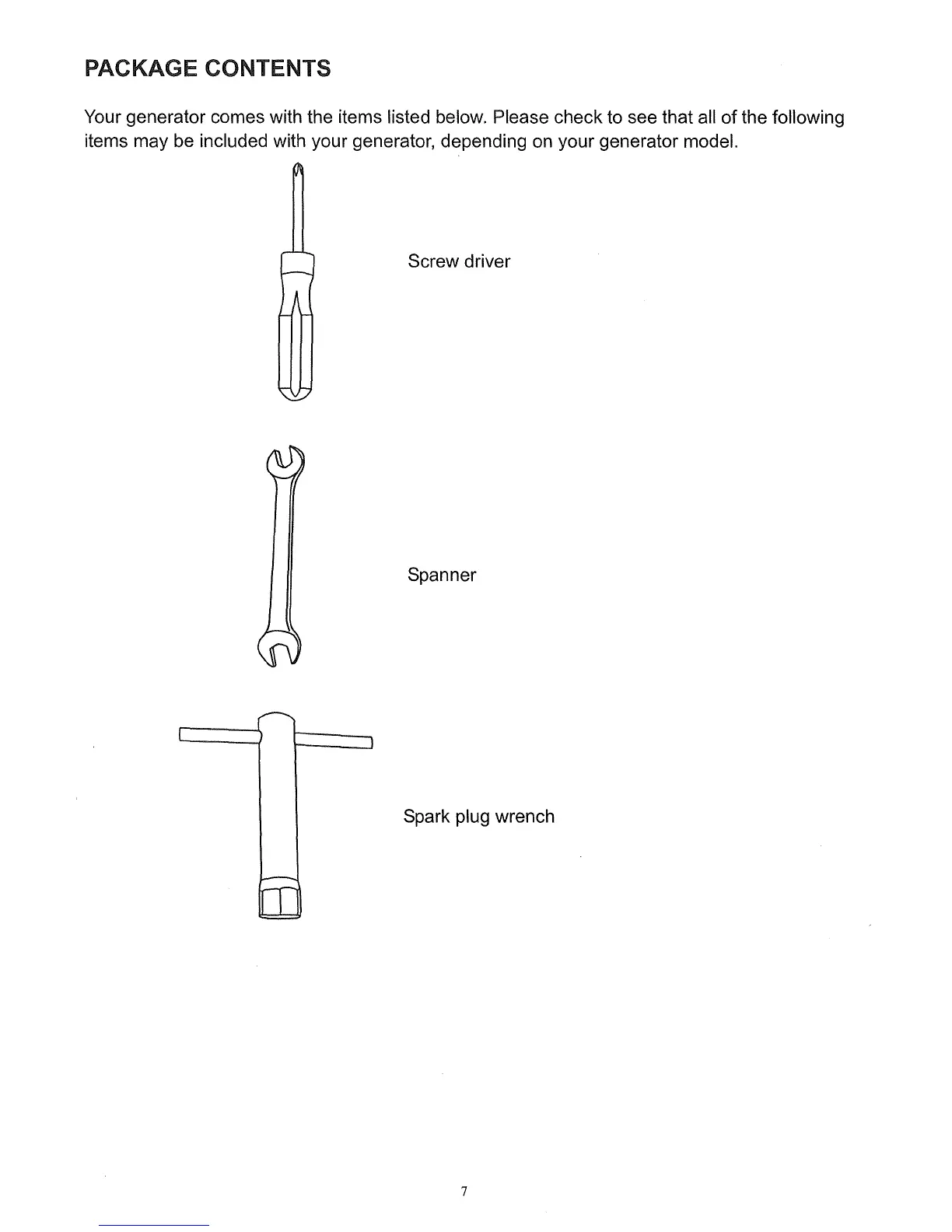 Your generator comes with the items listed below. Please check to see that all of the following
