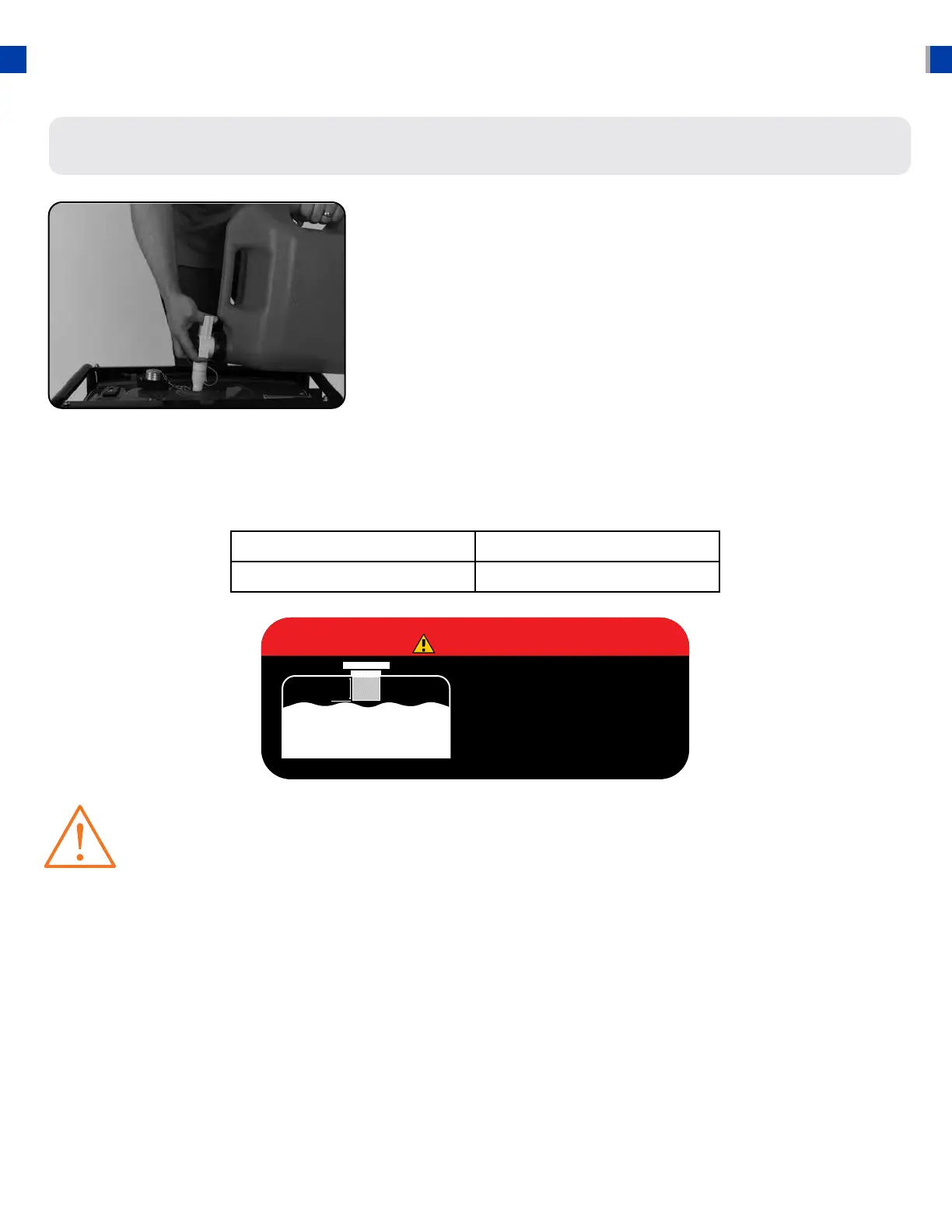 WARNING: Gas can expand. Do not ll the gas tank to the very top. Leave a
