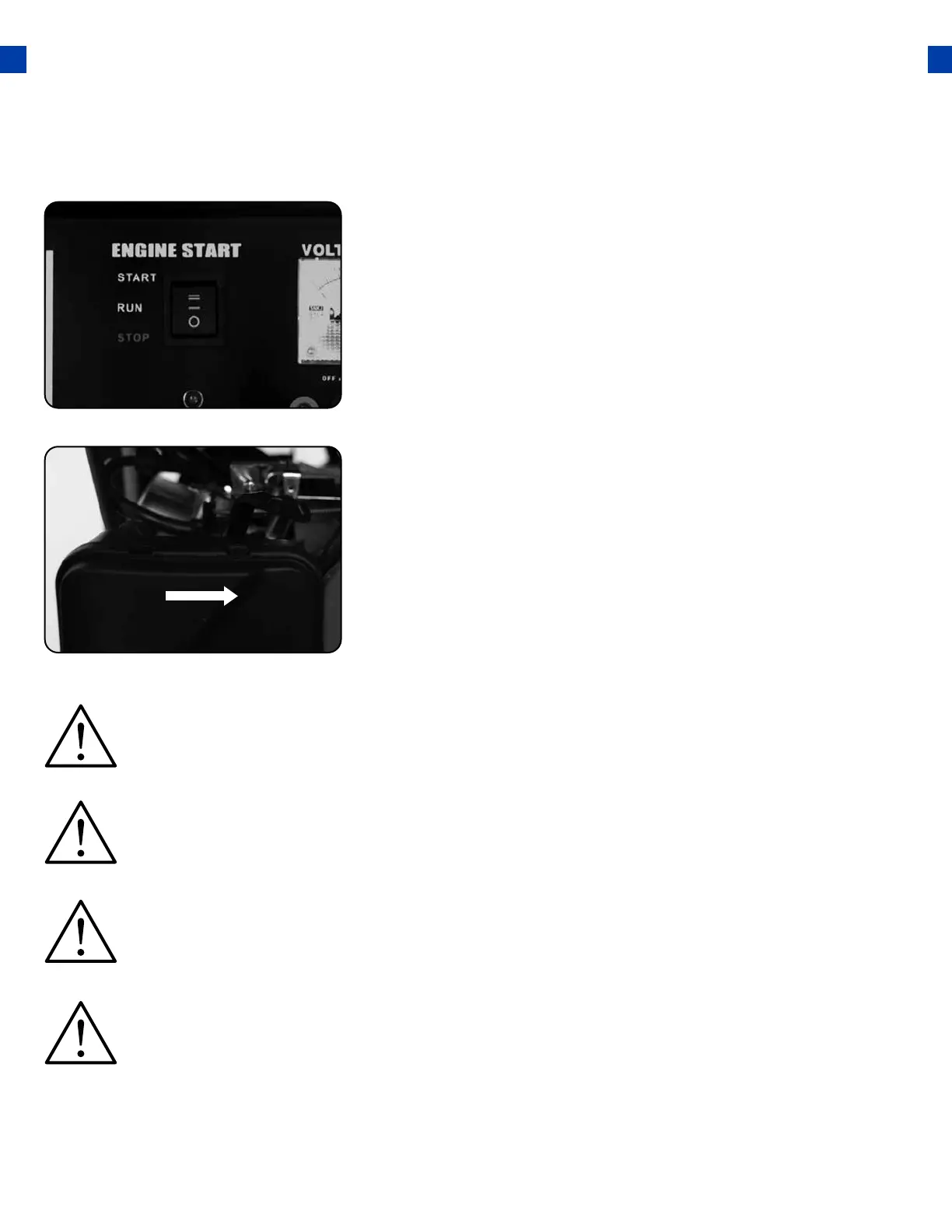 motor. If the engine fails to start, release the switch and wait 10 seconds before