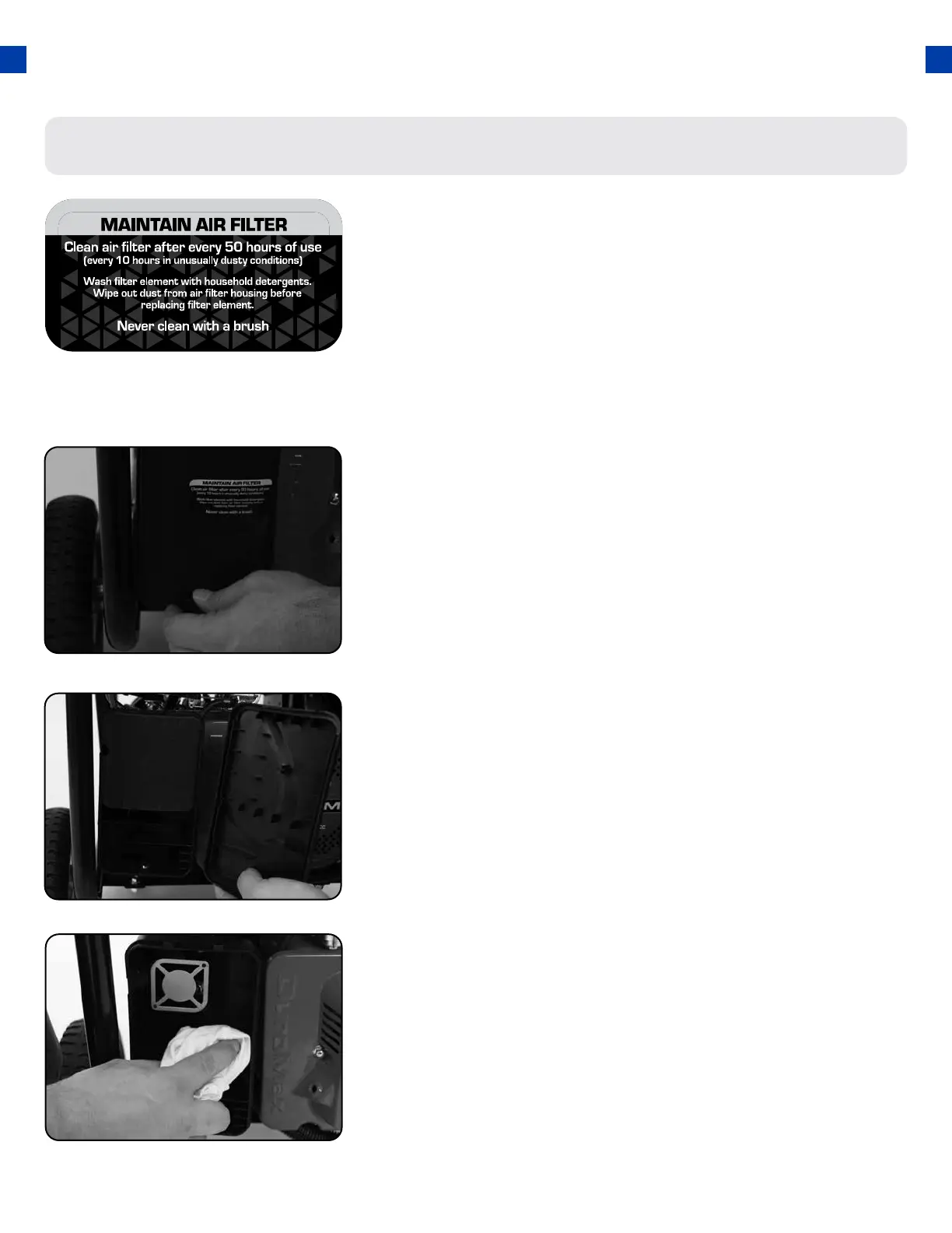 Routine maintenance of the air cleaner helps maintain proper