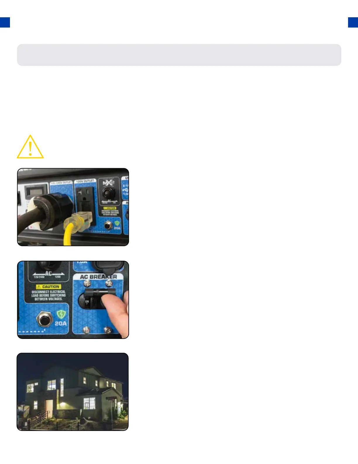 CAUTION: Do not connect 50Hz or 3-phase loads to the generator.