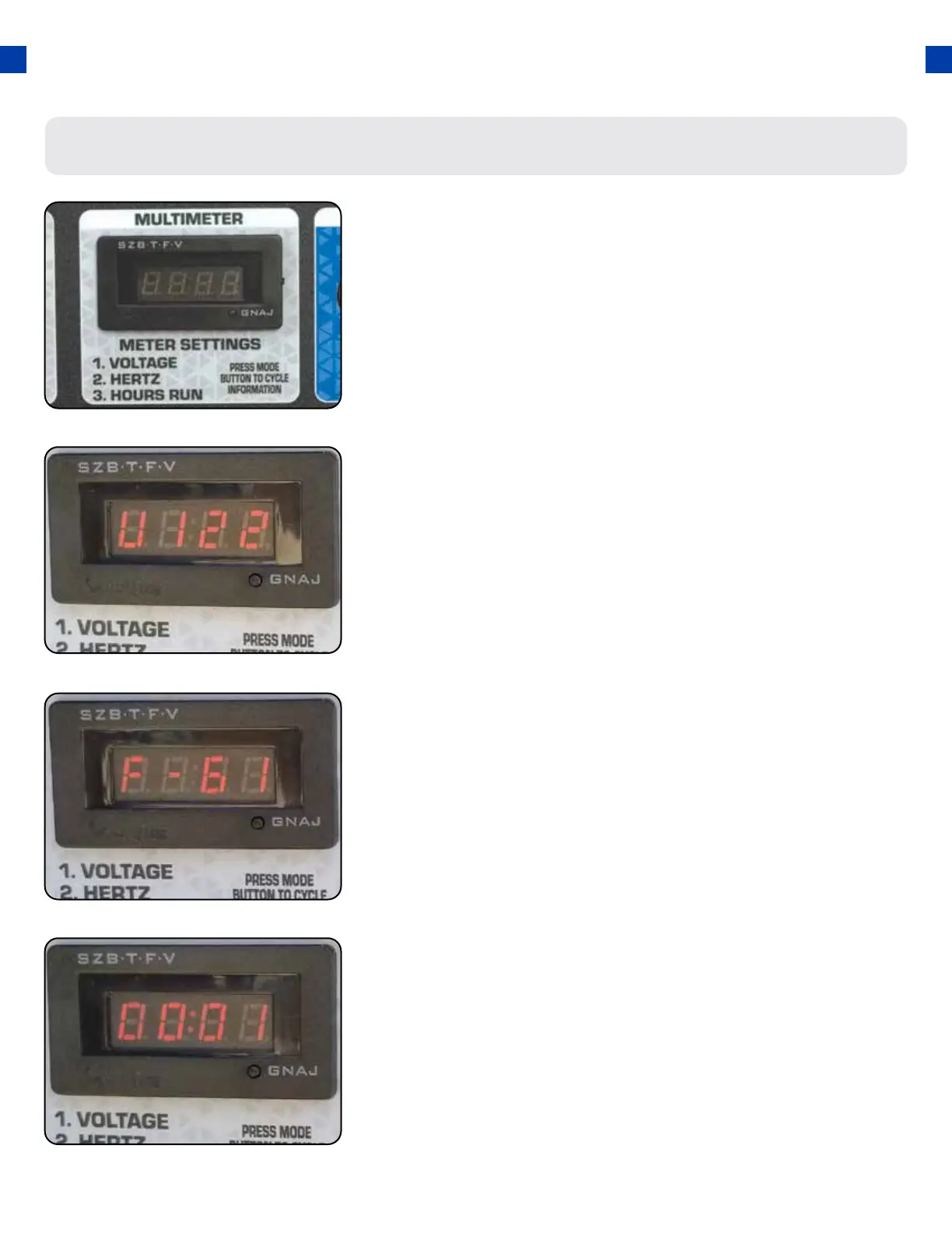 When the generator is started, the display will read the