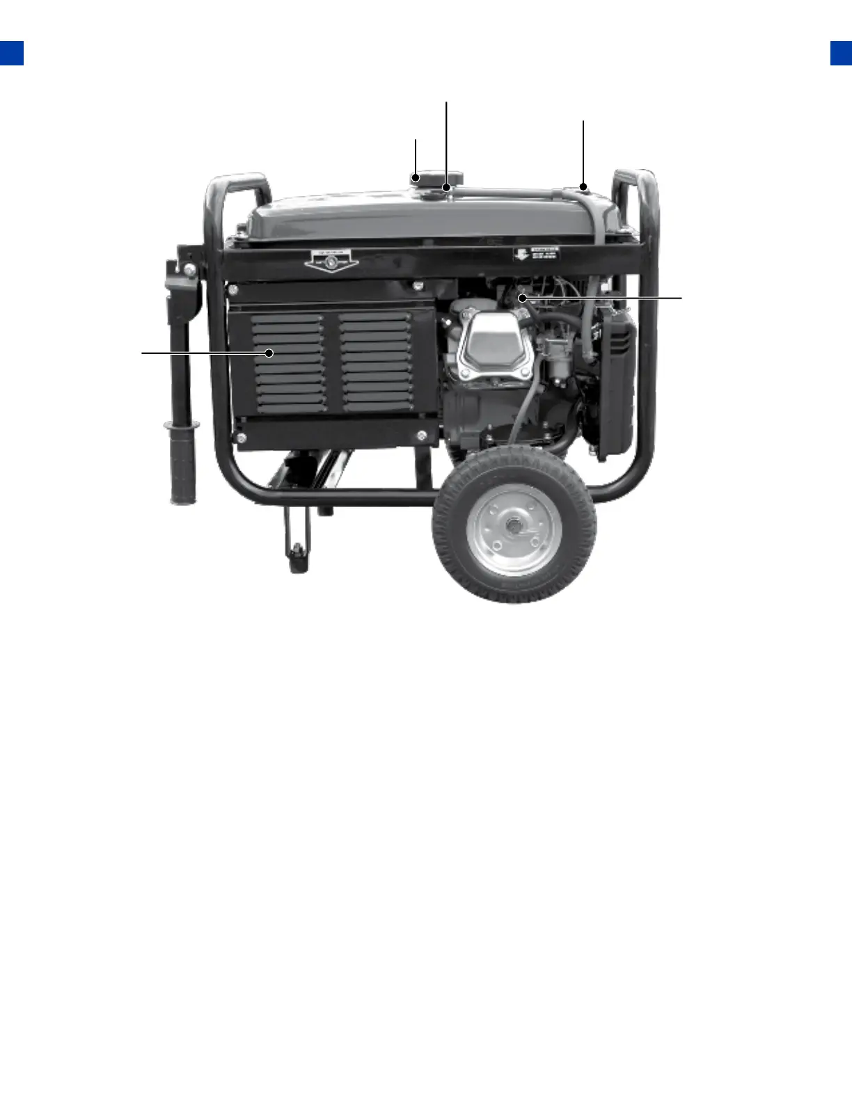 13. Engine Switch – 3 Position Switch to “Start”, “Run”, or turn “O” the generator.