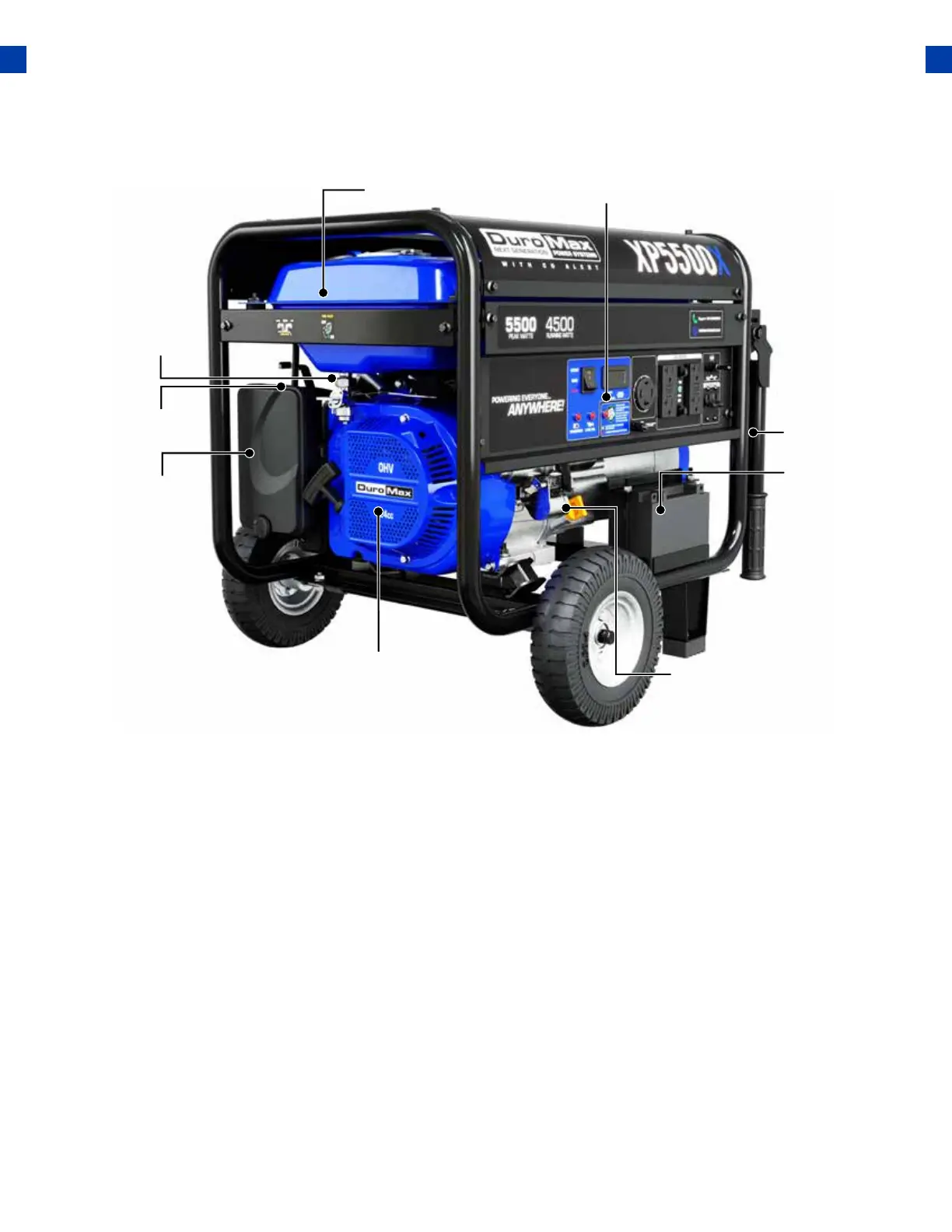 1. Recoil Start – Easy pull recoil start to start the engine without the electric start.