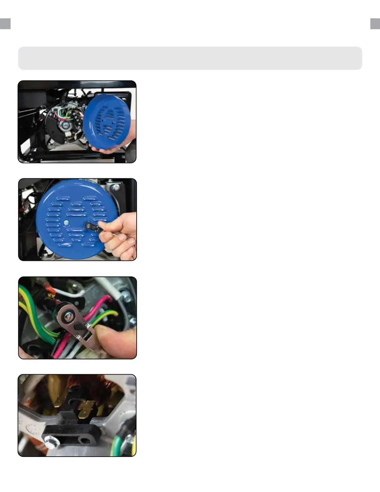 Remove the 2 bolts of the generator cover. Pull o the cover.