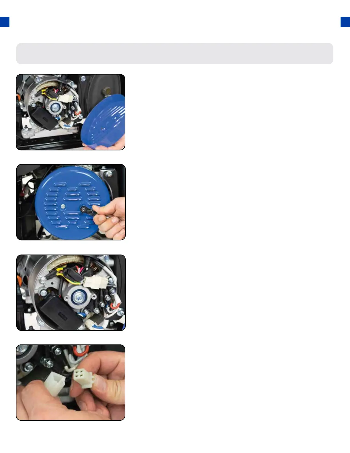 Remove the 2 bolts of the generator cover. Pull o the cover.