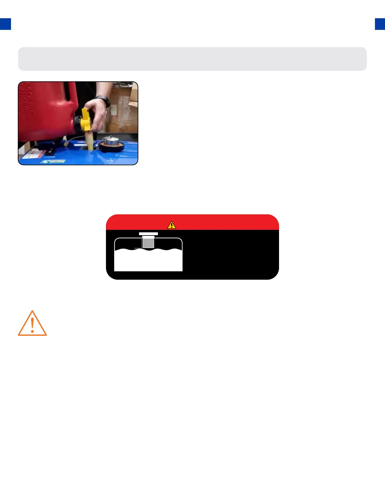 WARNING: Gasoline and gasoline fumes are highly ammable.