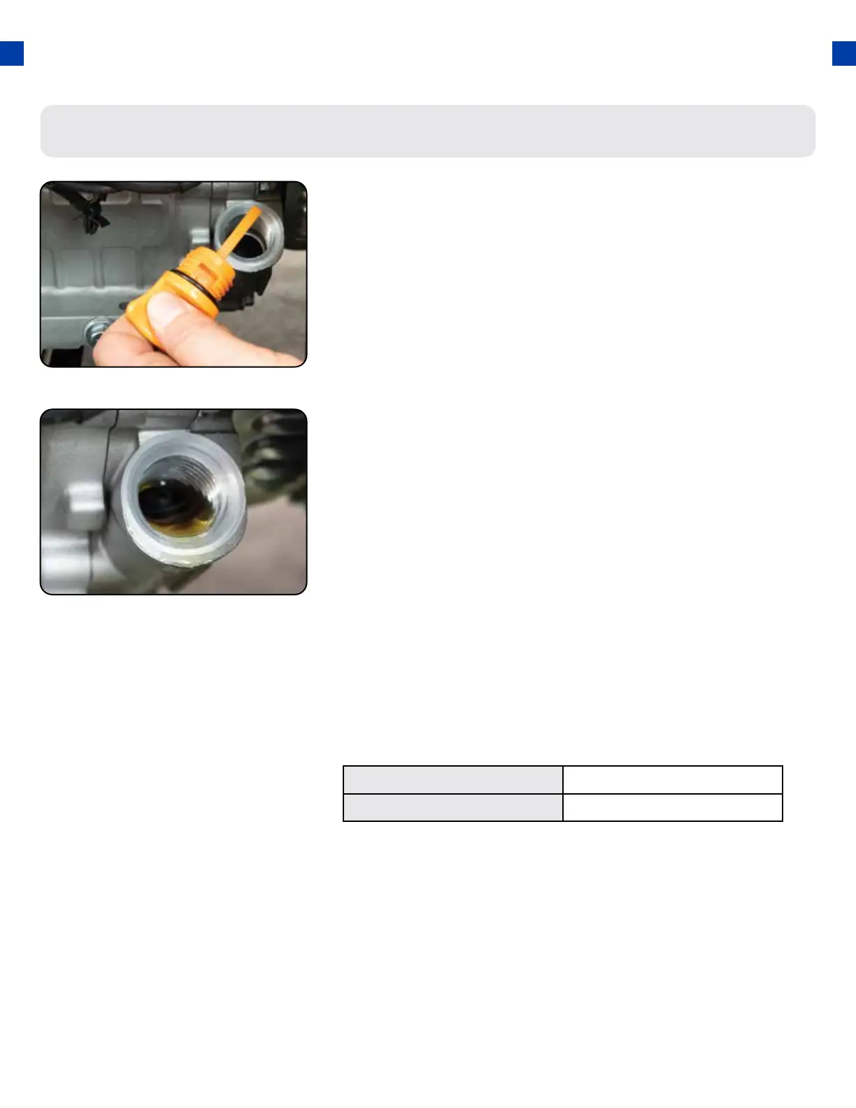 e. The oil will be visible in the oil ll spout when full.