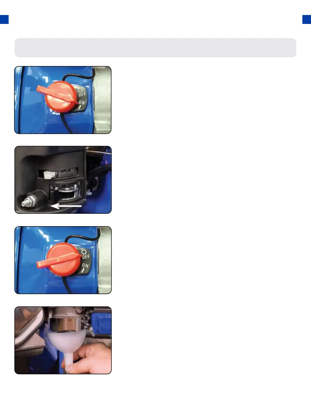 Shut the fuel valve o and allow engine to run until it stalls out.