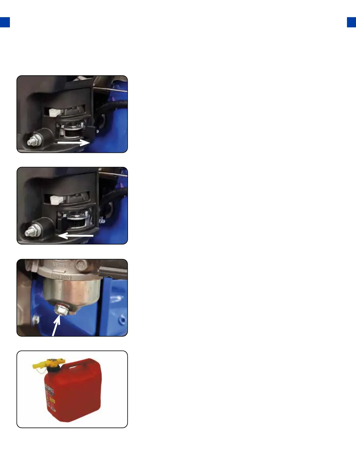 Turn fuel valve ON and drain