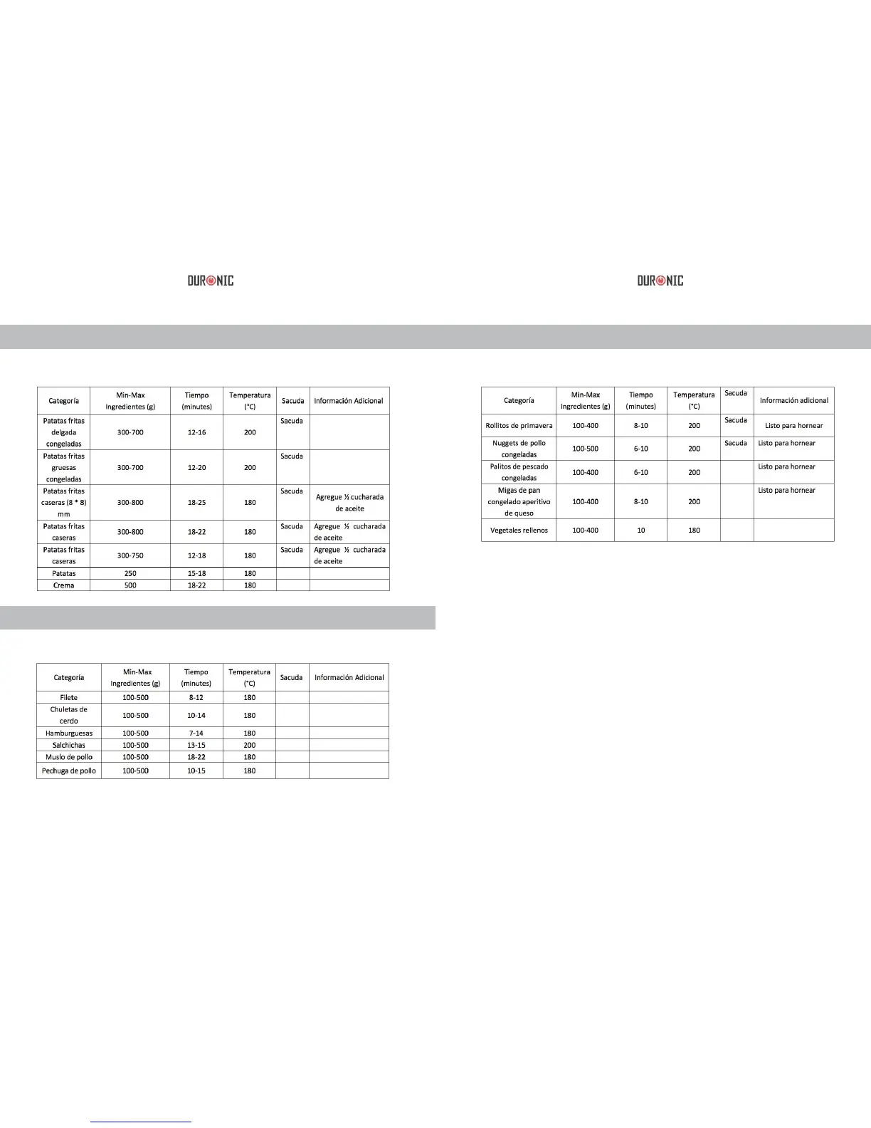 fritas congeladas). Si utiliza patatas fritas caseras, por favor sigua los