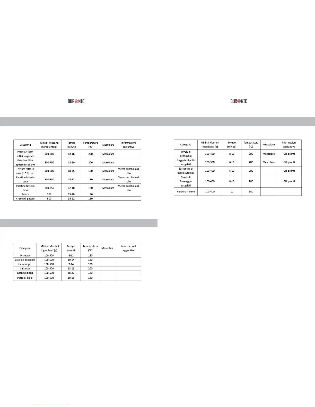 Per il miglior risultato, suggeriamo di utilizzarle precotte (come le patatine
