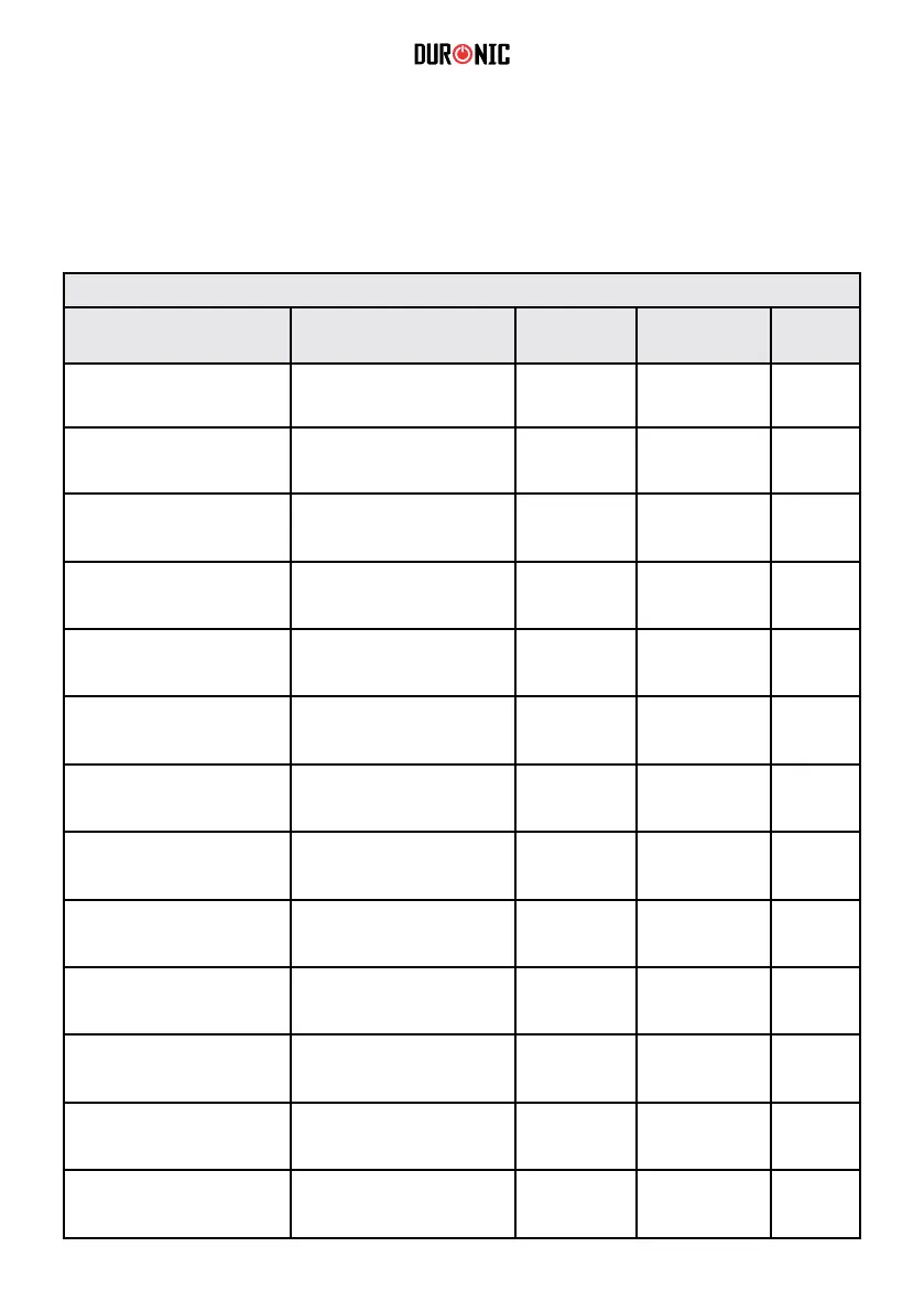 Tabella di cottura