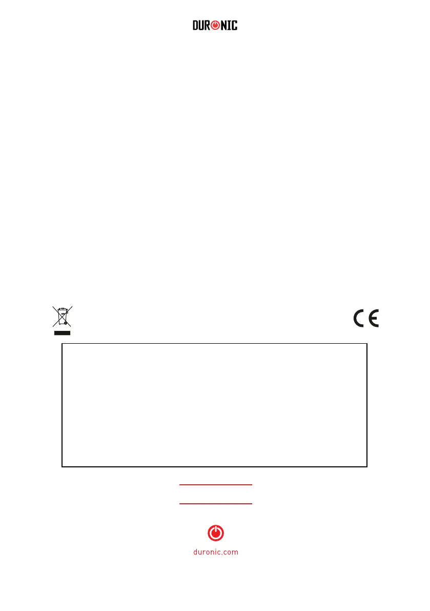 Duronic Producten worden aangeboden met een 1-jarige garantie onder de volgende