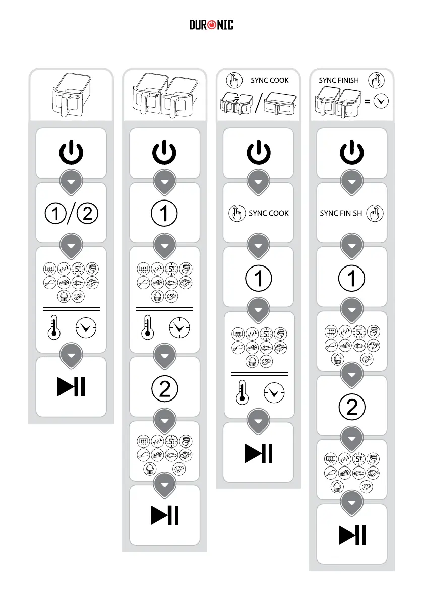 Duronic AF34 - Quick Start Guide and Basic Operation; Sync Cook Quick Start; Sync Finish Quick Start