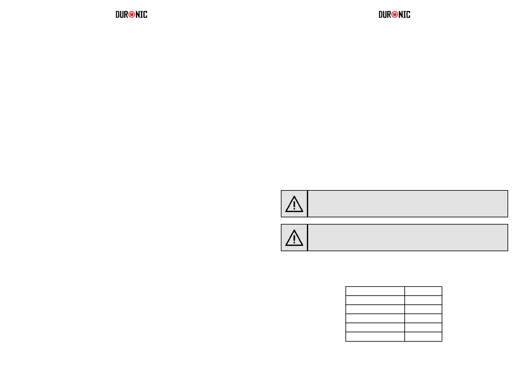 effectuées par Duronic en utilisant des pièces et accessoires originaux.
