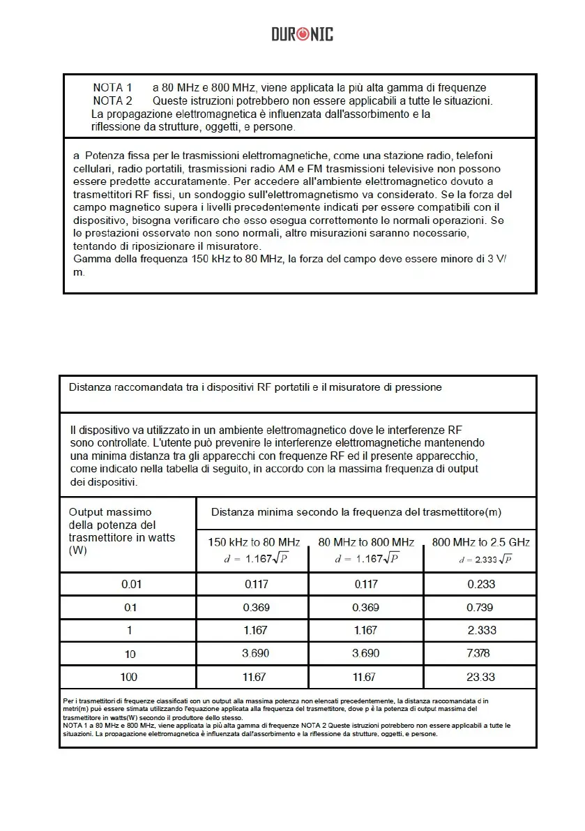 Tabella 6 – Distanza raccomandata tra i dispositivi RF portatili e l’equipaggiamento ME o sistemi