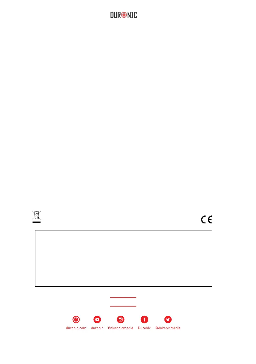 dell’azienda. I prodotti Duronic offrono 1 anno di garanzia alle seguenti condizioni: