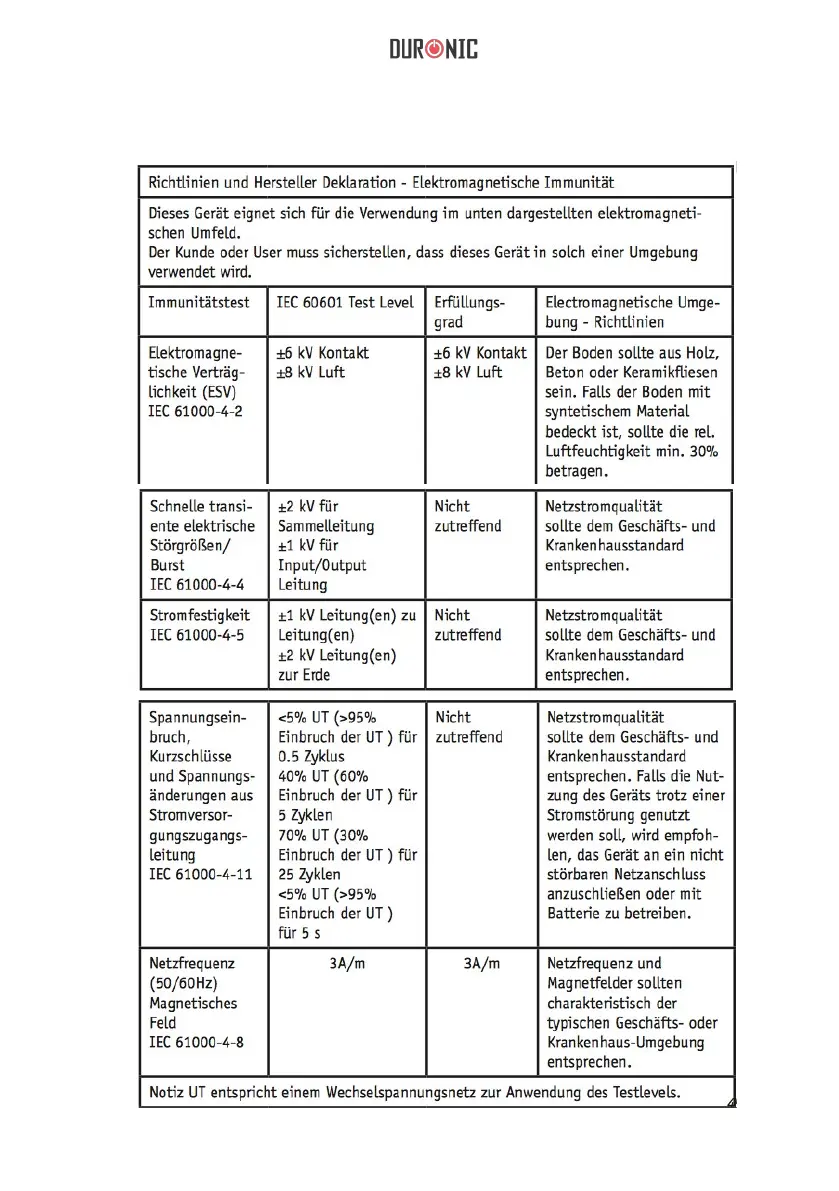 Tabelle 2 Richtlinien und Hersteller Deklaration - Elektromagnetische Immuni- tät -
