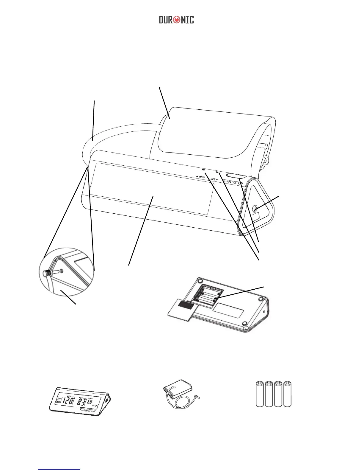 di pressione 2. Bracciale (22-42cm) 3. 4*AAA Batterie alcaline