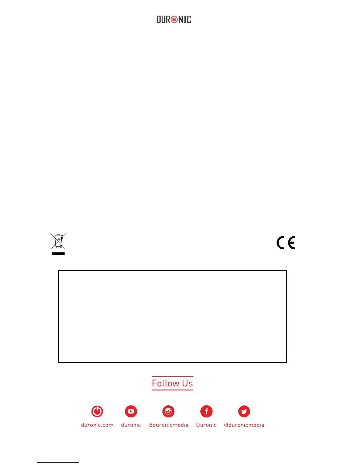 Duronic Products are offered with a 1 year guarantee under the following conditions: