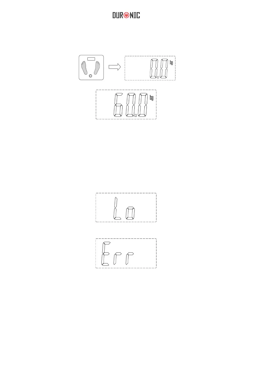 c) Scendere dalla bilancia e attendi che sul display venga visualizzato 0.0.