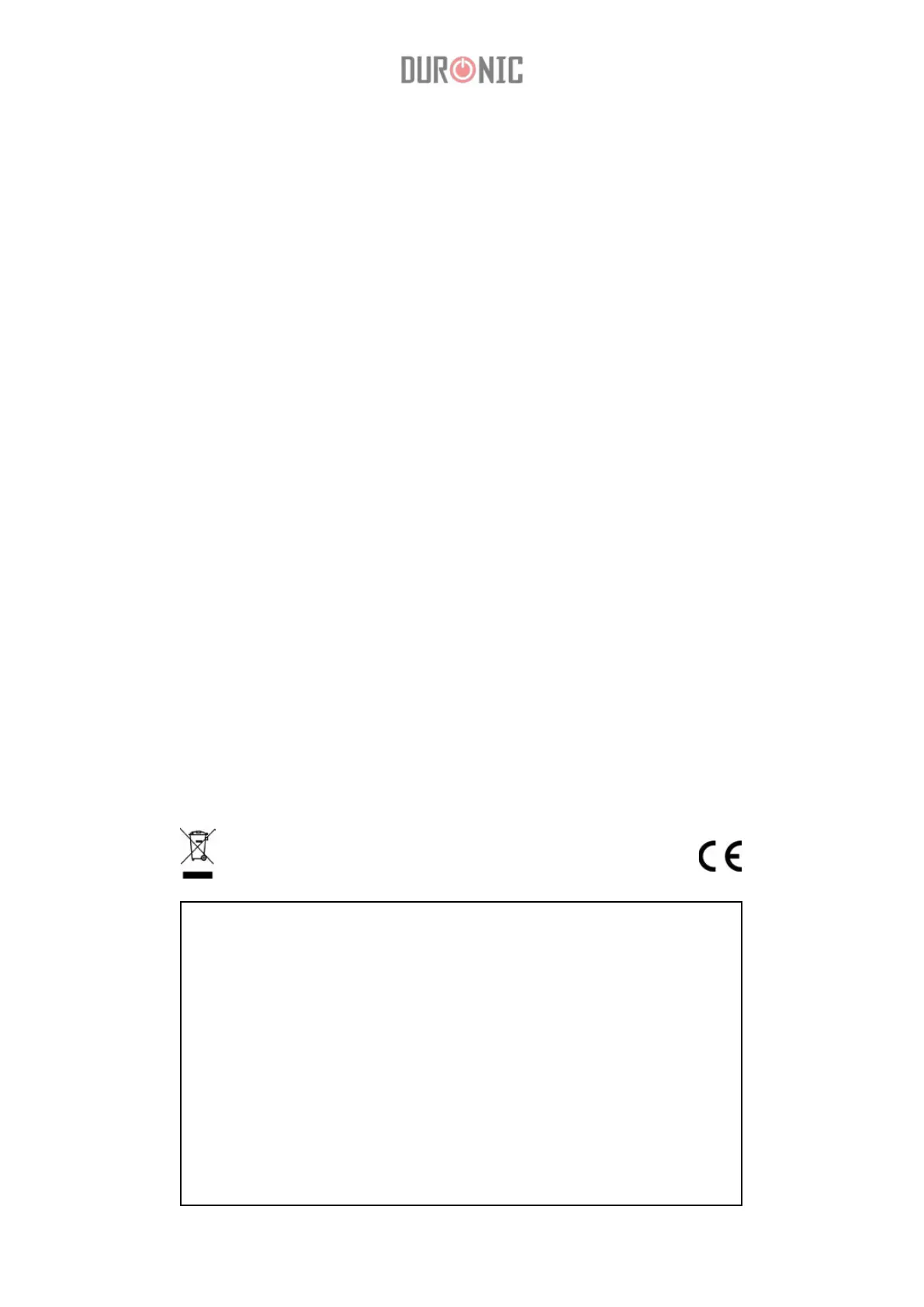 Unternehmens. Duronic Produkte haben 1 Jahr Gewährleistung