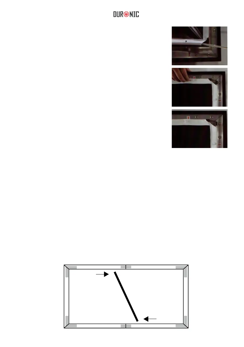 11) Posizionare la tela sul telaio. Iniziando da un lato