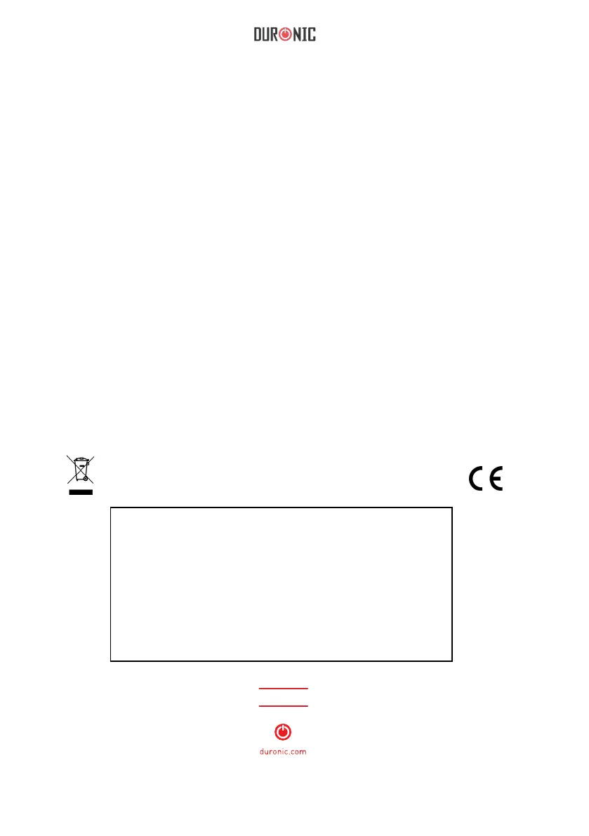 dell’azienda. I prodotti Duronic offrono 1 anno di garanzia alle seguenti condizioni: