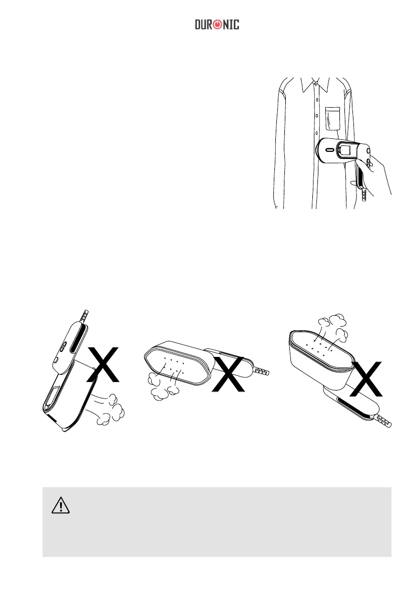 Placez le fer à repasser sur le vêtement et vous verrez la vapeur pénétrer le